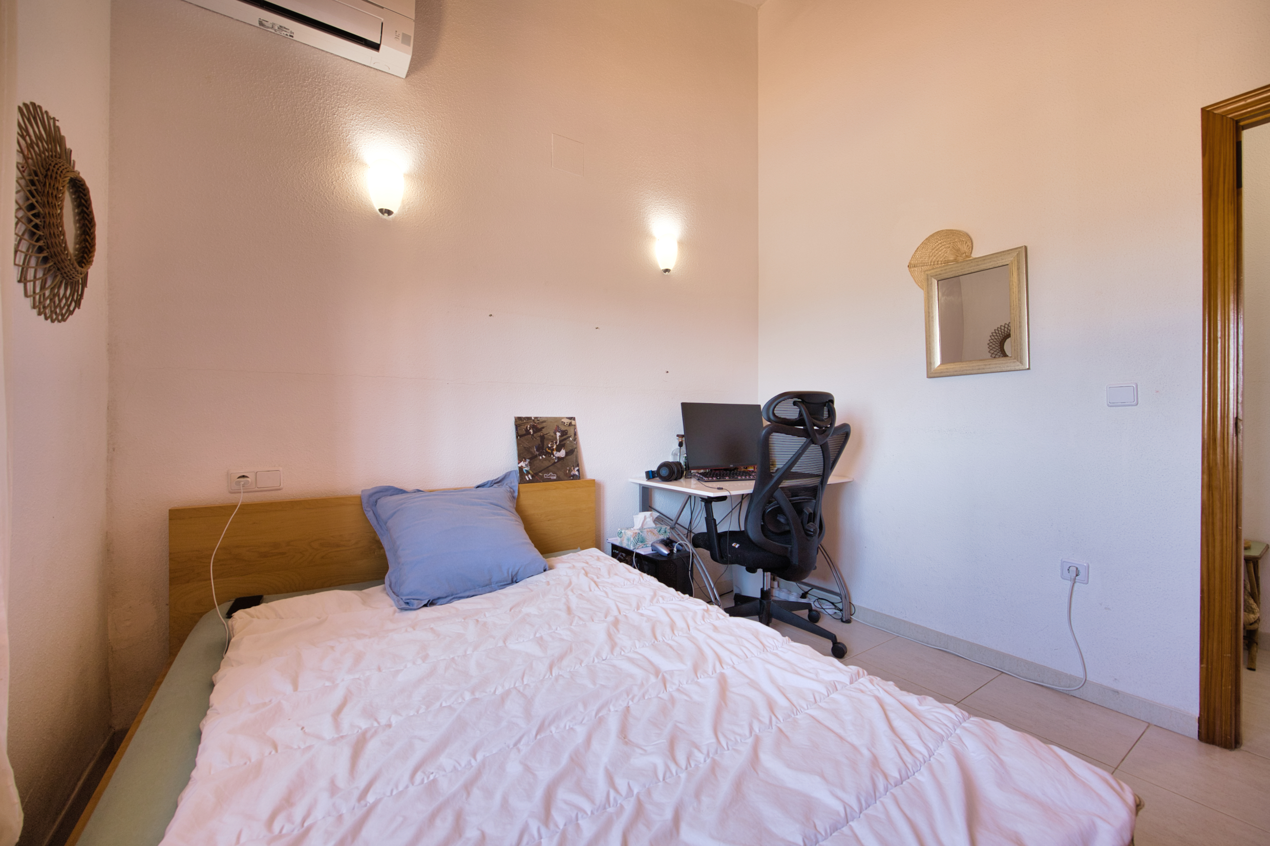 The villa offers 2 comfortable bedrooms and 2 bathrooms, all thoughtfully distributed on one floor for easy living. The bright interiors provide a warm and inviting atmosphere, complemented by air conditioning and heating for year-round comfort.